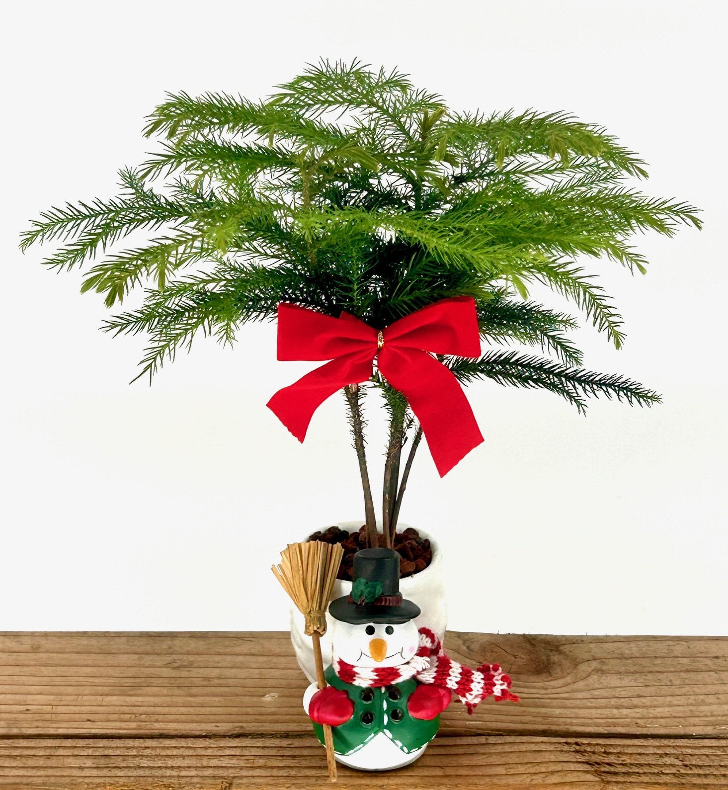 Norfolk Island Pine Bonsai Tree Snowman Pot (Araucaria Heterophila)